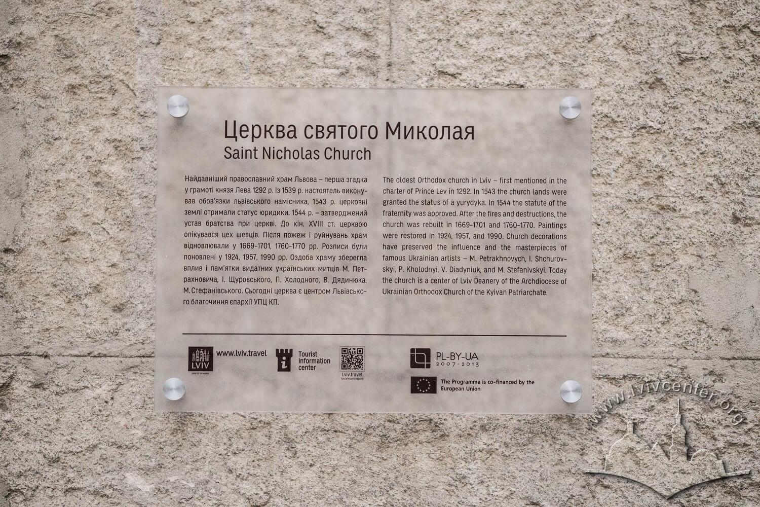 Vul. Khmelnytskoho, 28. A plaque attached to the building's facade