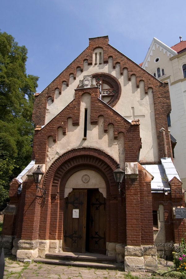 Vul. Khmelnytskoho, 77. Modern chapel located to the northwest of the church. Late 19th c. clergy house is seen on the left, it is derelict today