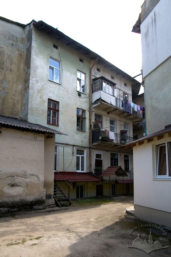 Courtyard in front of the prayer hall, on the background, the housing of vul. Zhovkivska