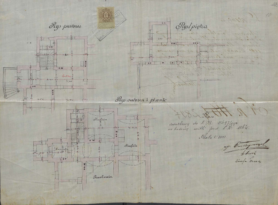 На початках родина Франців, ймовірно, мешкала ближче до свого виробництва. Згідно з покажчиками власників нерухомості, Йозеф Франц став власником ділянки під конскрипційним №162 ¼ на вулиці Болотяній (сучасній Залізняка) між 1863 і 1871 роками (Wegweiser, 1856, 1863; Skorowidz 1871).